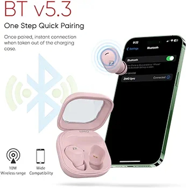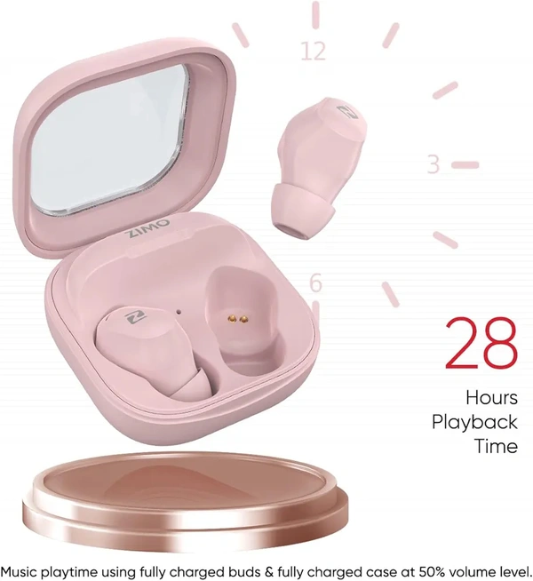 Zimo Sync Mini in-Ear TWS Earbuds with Bluetooth 5.3, 28 Hrs Playtime, 8mm Drivers, Stereo Calls, Touch Control, Type-C Charging Wireless Headphones, Voice Assist & IPX4 Water Resistant (Light Lilac)